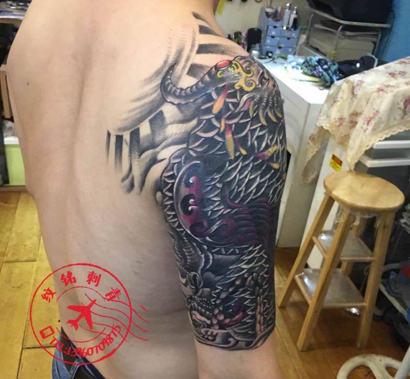 • 纹身吧推荐的披肩图腾半胛纹身图案作品展示