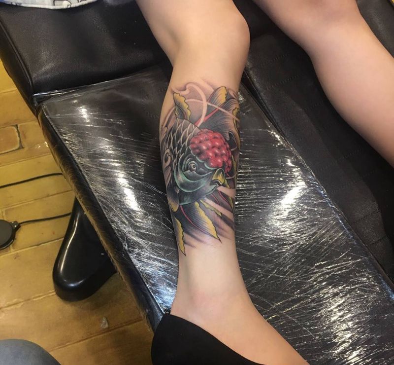 • T网红王老大花腿龙纹身图片_腿部新传统纹身图案
