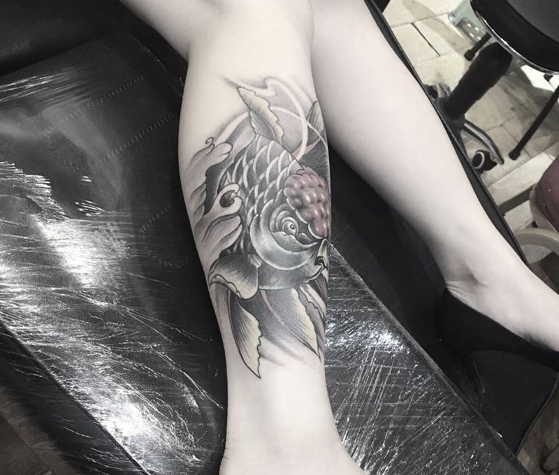 • T网红王老大花腿龙纹身图片_腿部新传统纹身图案