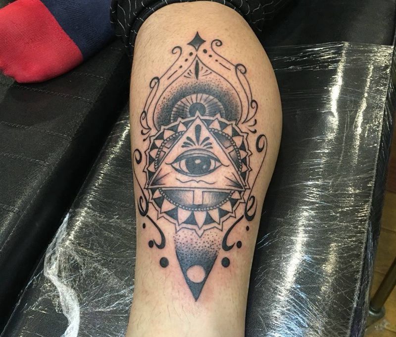 • T包小腿吹火男+阿多福纹身图片_腿部老传统新传统吹火男阿