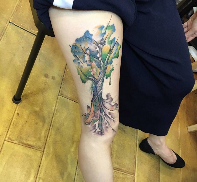 • T网红王老大花腿龙纹身图片_腿部新传统纹身图案