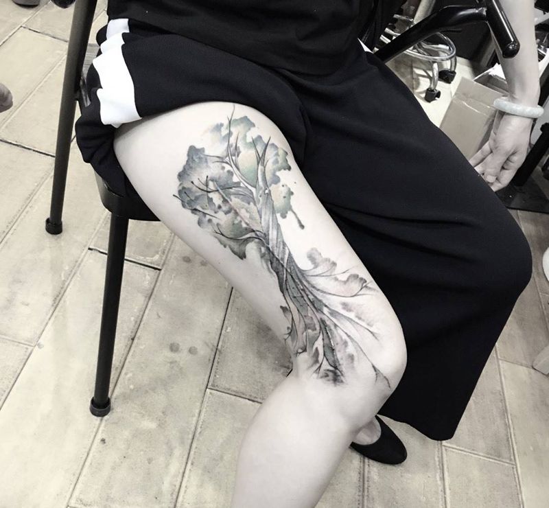 • T网红王老大花腿龙纹身图片_腿部新传统纹身图案