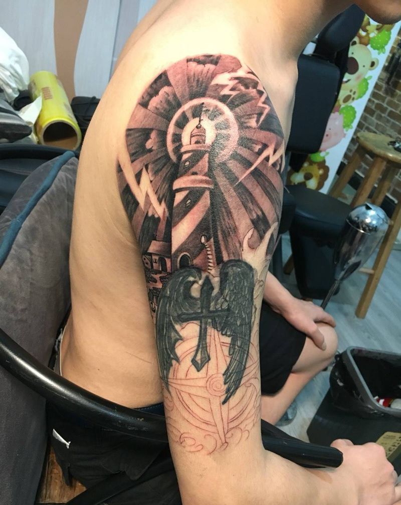 • 纹身吧推荐的披肩图腾半胛纹身图案作品展示
