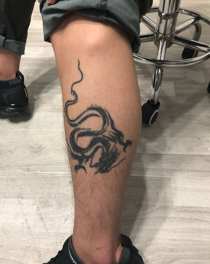 • T网红王老大花腿龙纹身图片_腿部新传统纹身图案