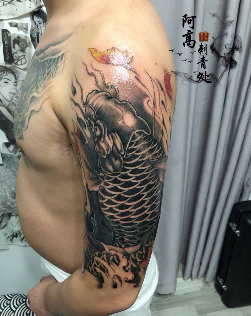 当前位置: 首页 >福建省福州市纹身店-阿高刺青处纹身图案>鲤鱼遮盖纹身图片