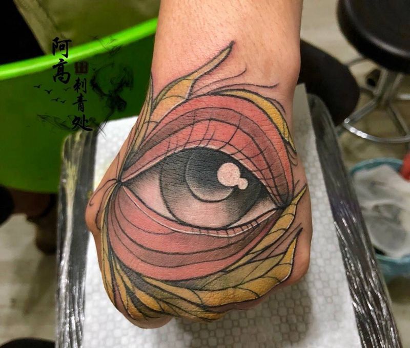 • 手背潮流时尚的玫瑰花眼睛纹身图案