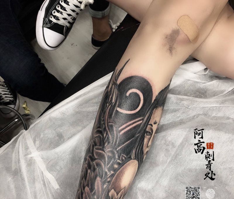 当前位置: 首页 >福建省福州市纹身店-阿高刺青处纹身图案>毁皮般若线条,修改上色包小腿纹身图片_腿部老传统纹身图案