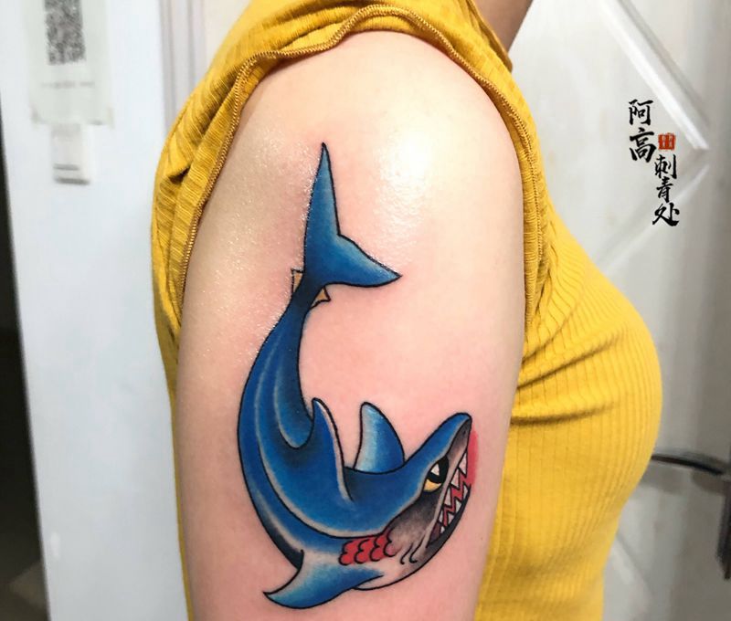 old school鲨鱼纹身图片_手臂Old School纹身图案