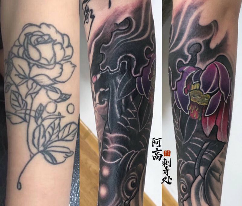 当前位置: 首页 >福建省福州市纹身店-阿高刺青处纹身图案>遮盖纹身图片_手臂新传统纹身图案