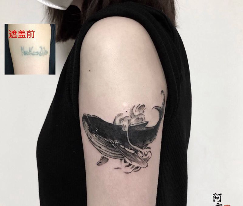 当前位置: 首页 >福建省福州市纹身店-阿高刺青处纹身图案>鲸鱼遮盖纹身图片_手臂点刺纹身图案