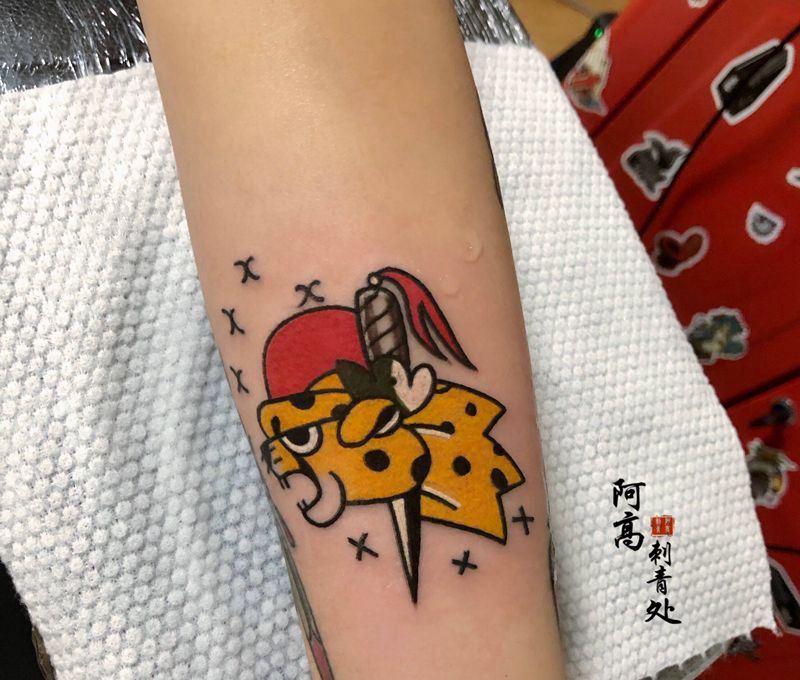 当前位置: 首页 >福建省福州市纹身店-阿高刺青处纹身图案>小猎豹纹身图片_手臂Old School纹身图案