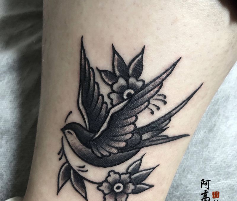 school飞燕纹身图片_腿部Old School纹身图案
