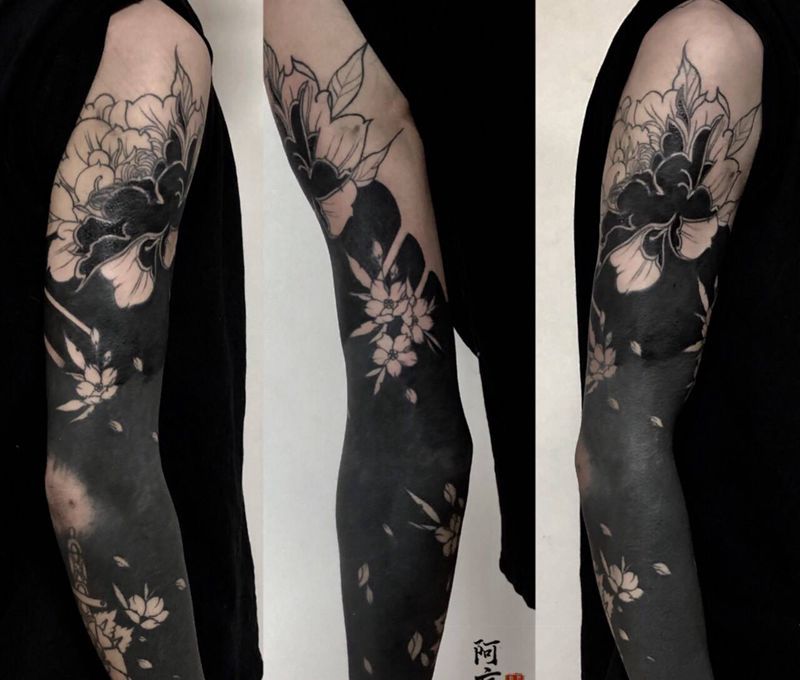 黑臂,未完纹身图片_手臂水墨纹身图案
