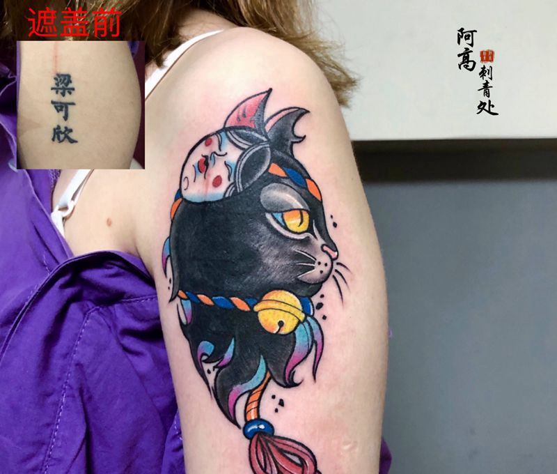 当前位置: 首页 >福建省福州市纹身店-阿高刺青处纹身图案>猫咪纹身图片_手臂New School纹身图案