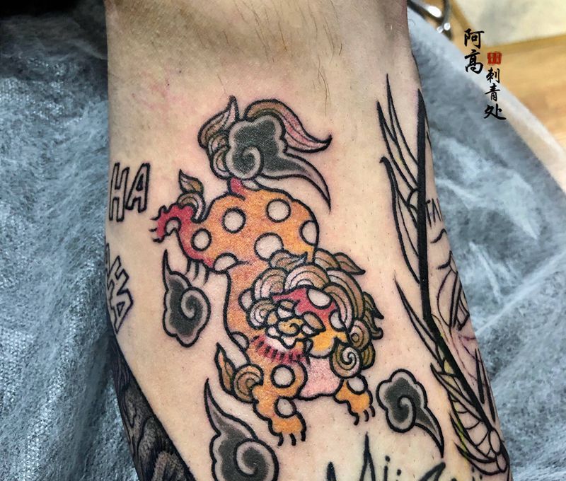 当前位置: 首页 >福建省福州市纹身店-阿高刺青处纹身图案>唐狮纹身图片_腿部老传统纹身图案