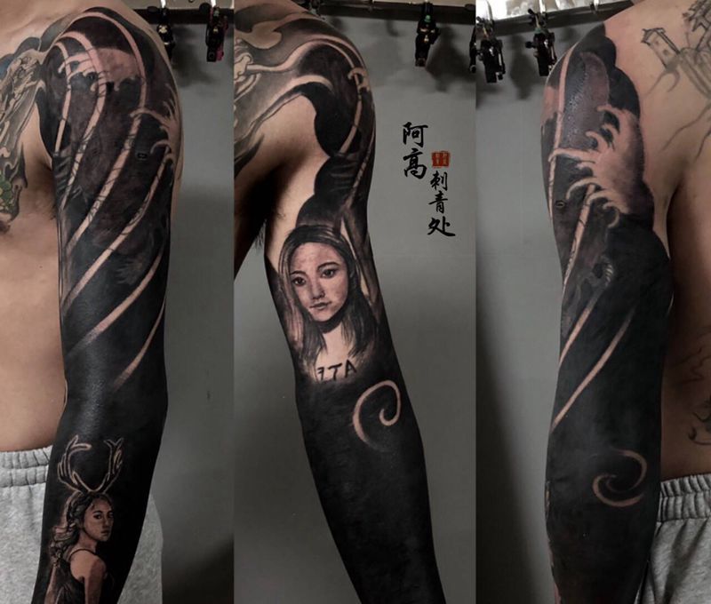 当前位置: 首页 >福建省福州市纹身店-阿高刺青处纹身图案>黑臂纹身图片_手臂老传统欧美写实纹身图案