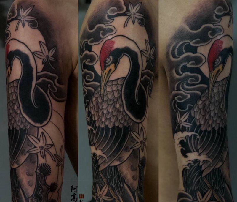 当前位置: 首页 >福建省福州市纹身店-阿高刺青处纹身图案>传统仙鹤纹身图片_手臂新传统纹身图案