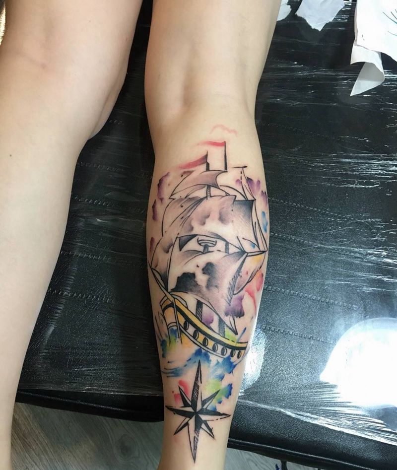 • T网红王老大花腿龙纹身图片_腿部新传统纹身图案