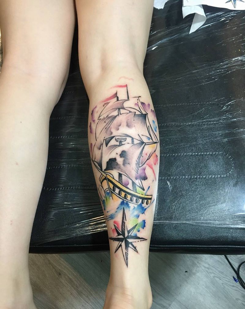 • T网红王老大花腿龙纹身图片_腿部新传统纹身图案