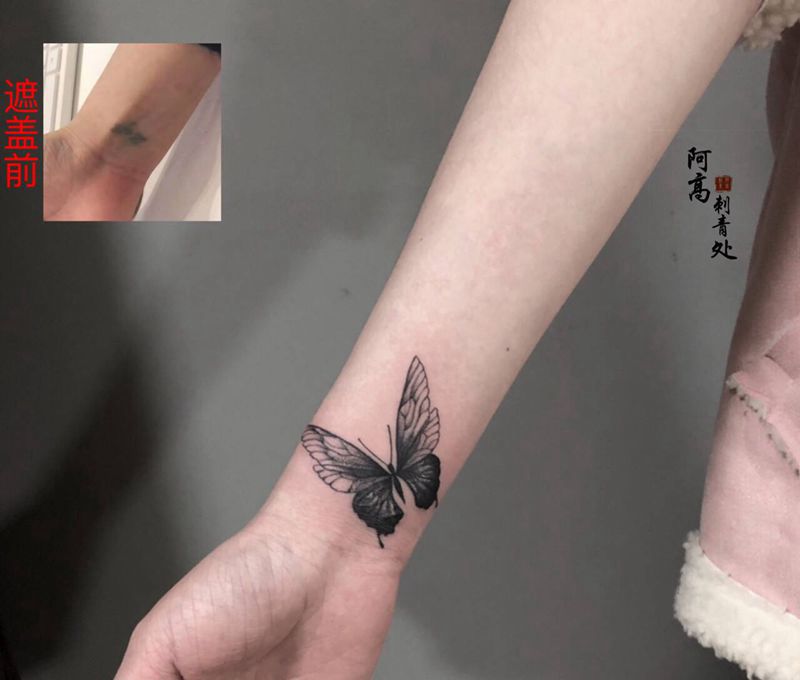小蝴蝶遮盖纹身图片_手臂点刺纹身图案