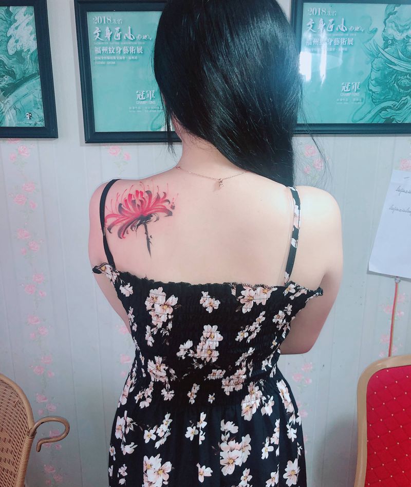 当前位置: 首页 >福建省福州市纹身店-福建纹铭刺青纹身图案>纹铭刺青纹身图片_肩部水彩彼岸花纹身图案