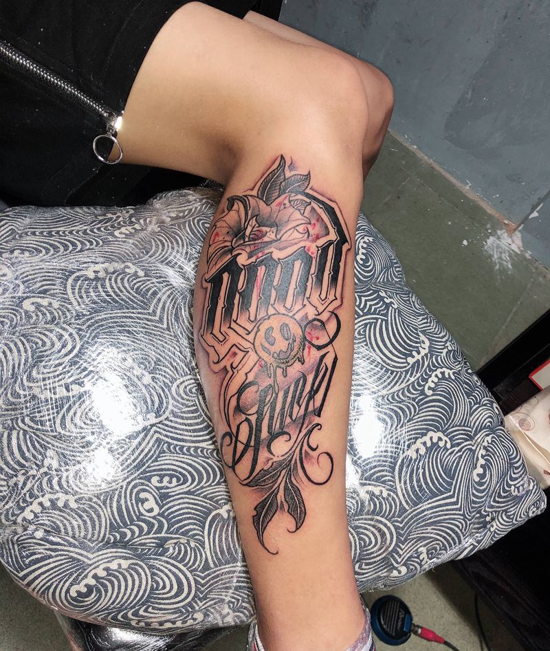 当前位置: 首页 >福建省福州市纹身店-福建纹铭刺青纹身图案>纹铭刺青纹身图片_腿部花体字花体英文纹身图案