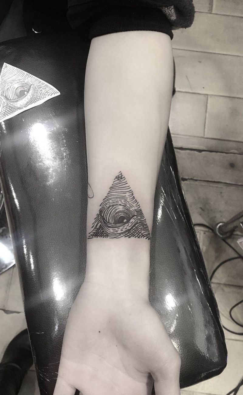 • 手背潮流时尚的玫瑰花眼睛纹身图案