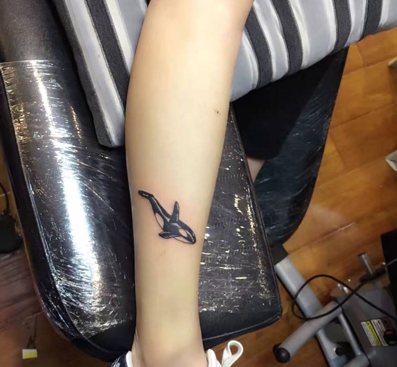 萌萌鲸纹身图片_成品腿部写实动物纹身图案