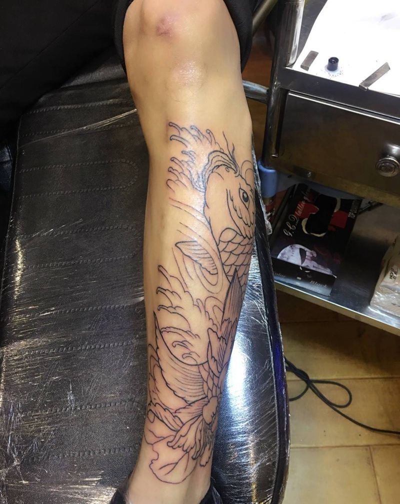 • T网红王老大花腿龙纹身图片_腿部新传统纹身图案