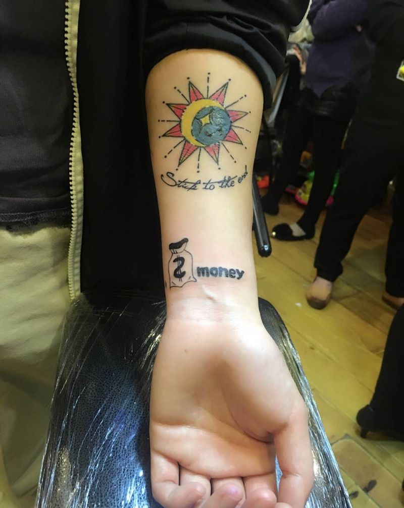 • T家庭图,一家四口生日纪念!纹身图片_手臂纹身图案