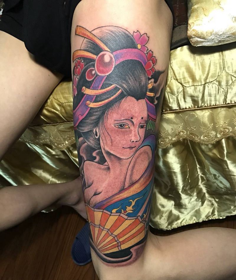 当前位置: 首页 >福建省福州市纹身店-异域彩绘纹身图案>艺妓纹身图片