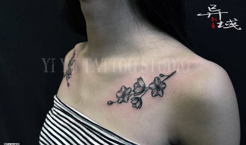 当前位置: 首页 >福建省福州市纹身店-异域彩绘纹身图案>锁骨小清新花卉纹身图片