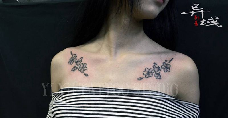 当前位置: 首页 >福建省福州市纹身店-异域彩绘纹身图案>锁骨小清新花卉纹身图片