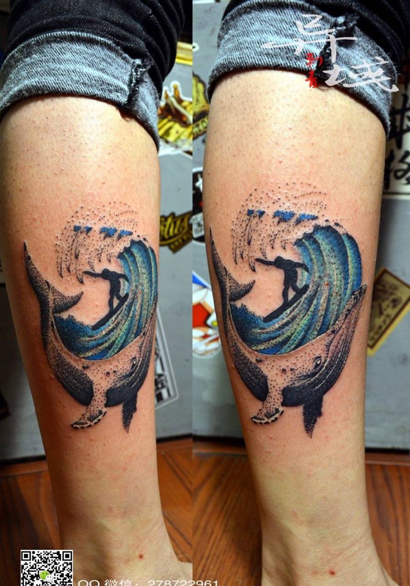 • T网红王老大花腿龙纹身图片_腿部新传统纹身图案