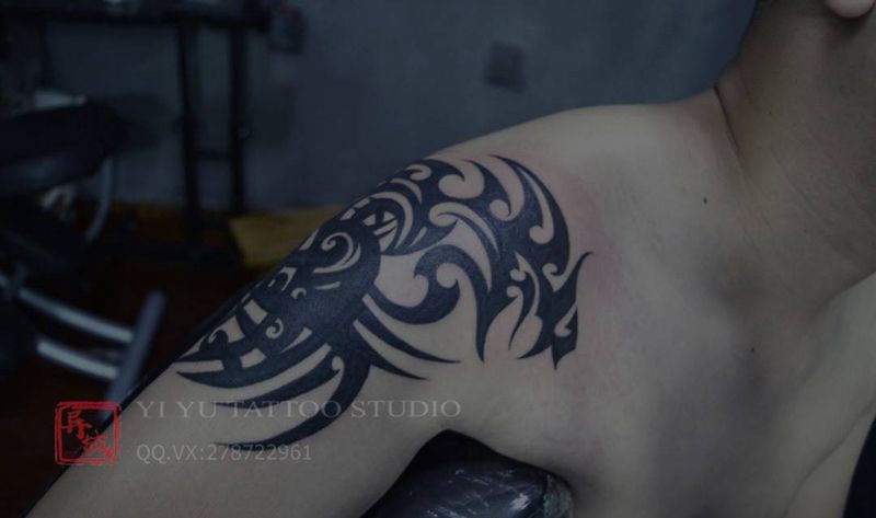 • 纹身吧推荐的披肩图腾半胛纹身图案作品展示