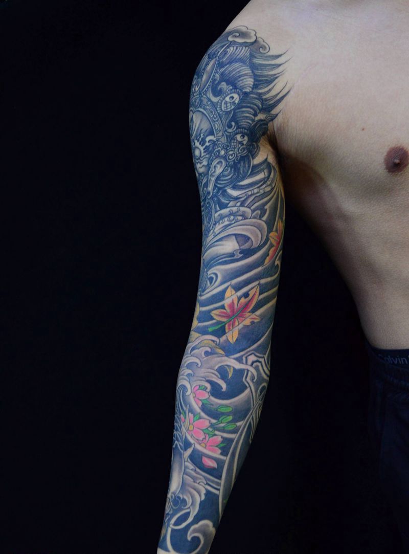 当前位置: 首页 >福建省福州市纹身店-异域彩绘纹身图案>大黑天鳌鱼花臂纹身图片_手臂手部新传统纹身图案