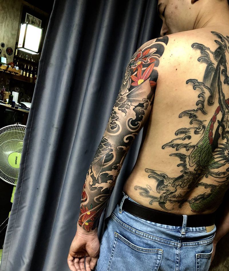 当前位置: 首页 >福建省福州市纹身店-刺古纹身会所纹身图案>鲤鱼花臂纹身图片_手臂新传统纹身图案