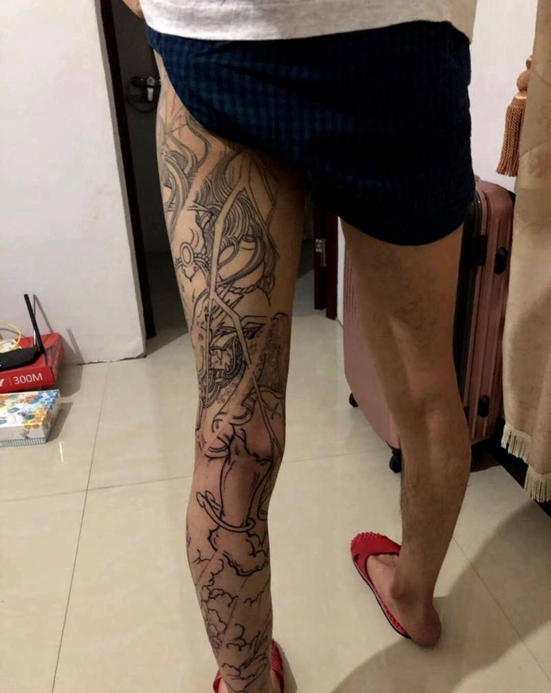 • T网红王老大花腿龙纹身图片_腿部新传统纹身图案