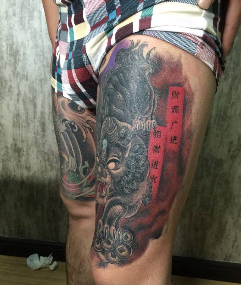• T网红王老大花腿龙纹身图片_腿部新传统纹身图案