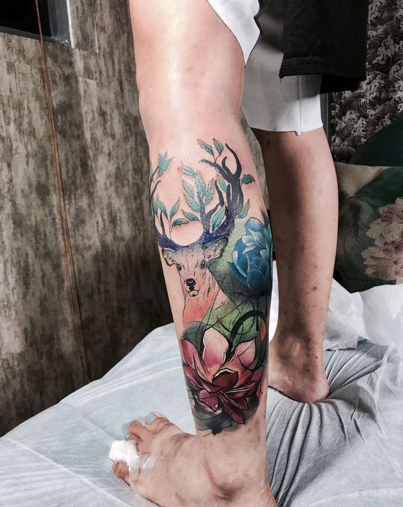 • T网红王老大花腿龙纹身图片_腿部新传统纹身图案