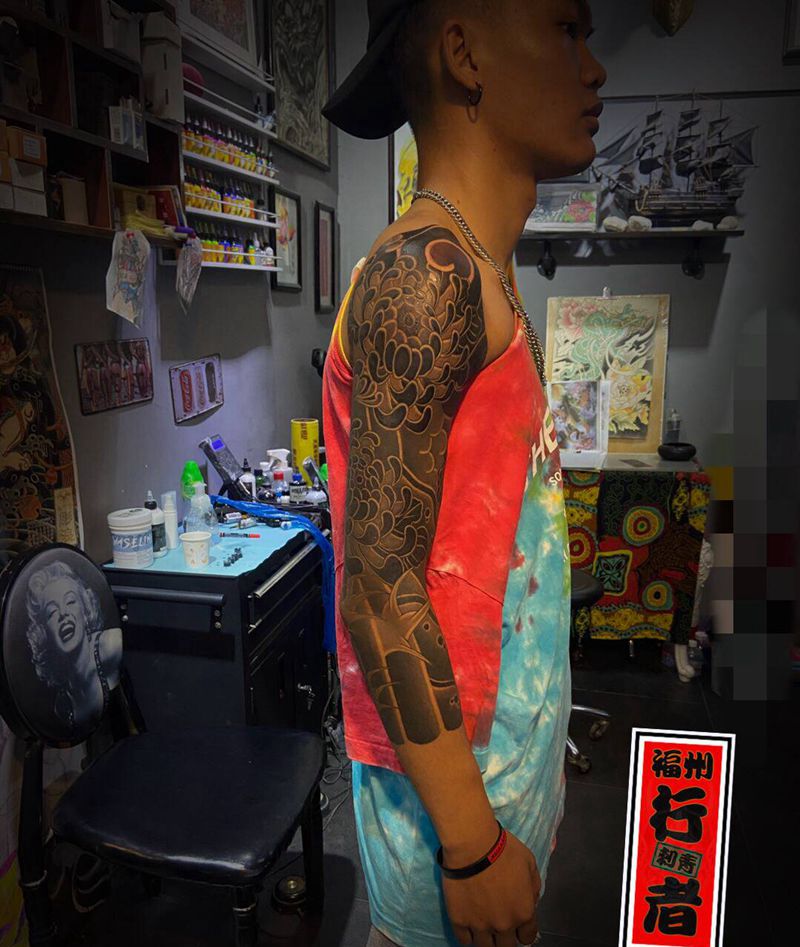 当前位置: 首页 >福建省福州市纹身店-行者刺青纹身图案>菊花七分袖纹身图片_手部手臂老传统菊花纹身图案