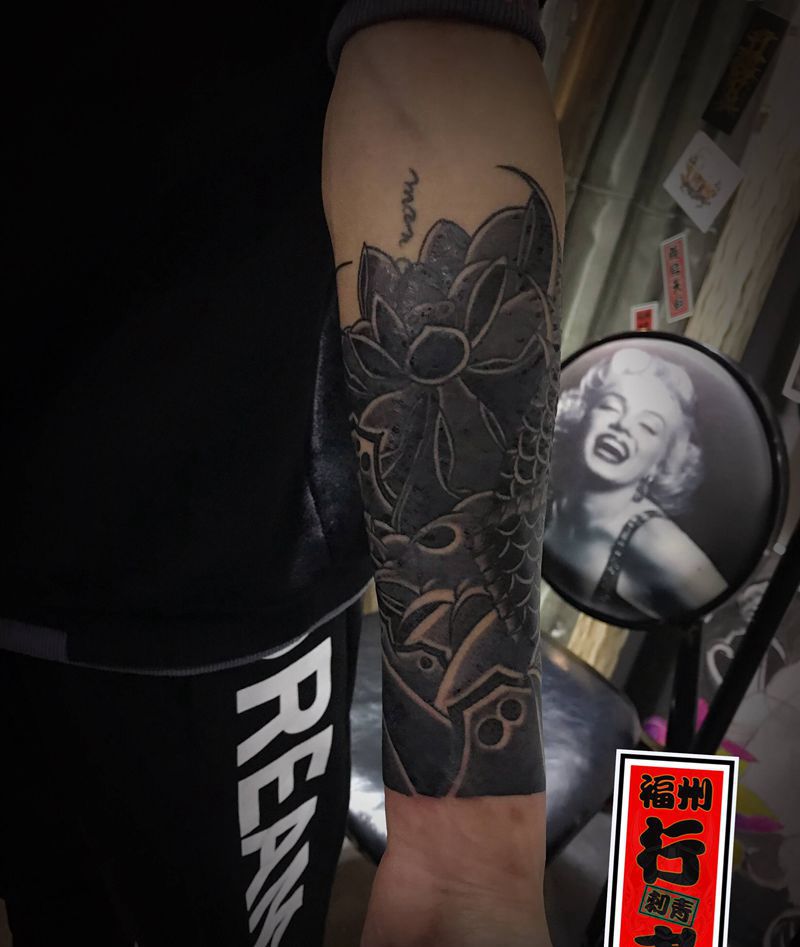 当前位置: 首页 >福建省福州市纹身店-行者刺青纹身图案>鲤鱼莲花纹身图片_手臂手部老传统纹身图案