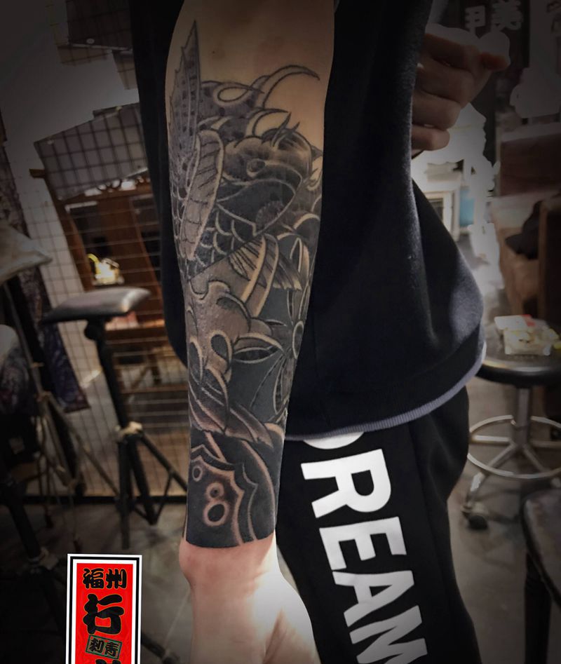 当前位置: 首页 >福建省福州市纹身店-行者刺青纹身图案>鲤鱼莲花纹身图片_手臂手部老传统纹身图案