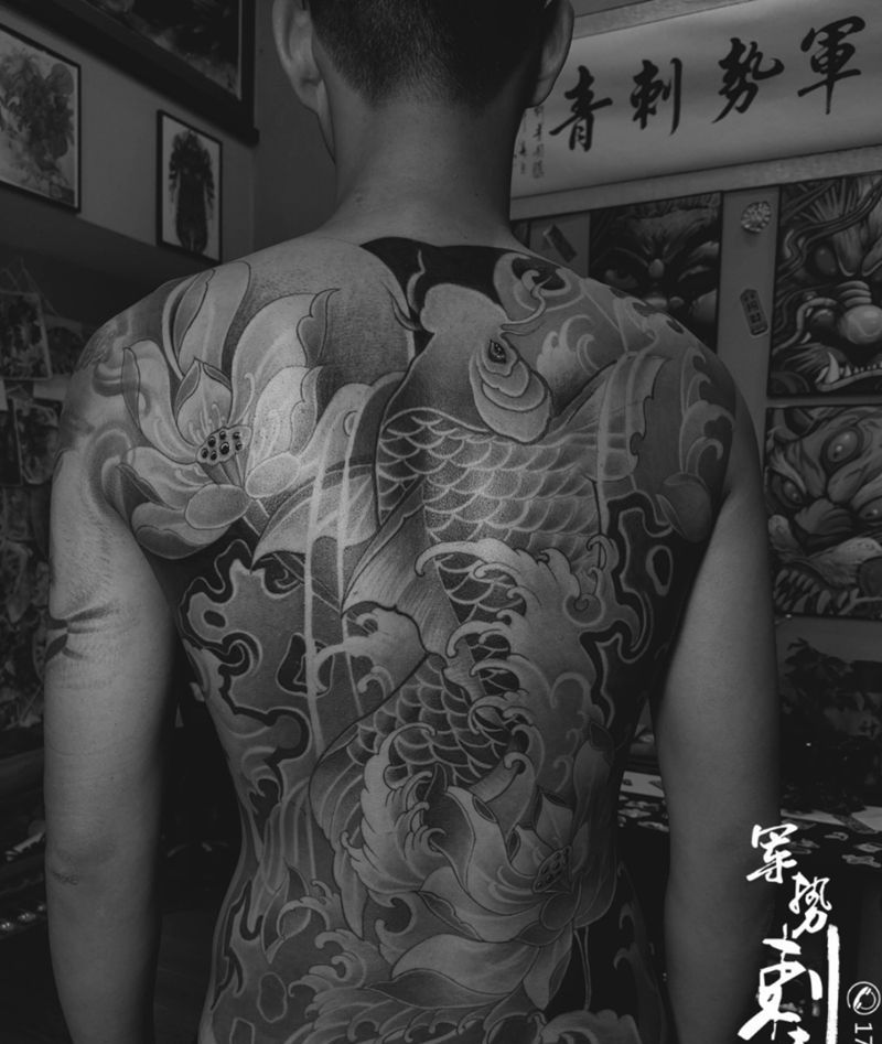 当前位置: 首页 >福建省福州市纹身店-军势刺青处纹身图案>鲤鱼纹身图片_背部纹身图案