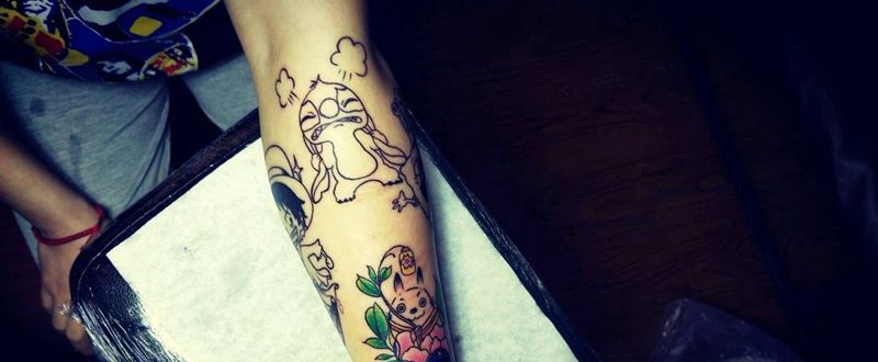 • T网红王老大花腿龙纹身图片_腿部新传统纹身图案