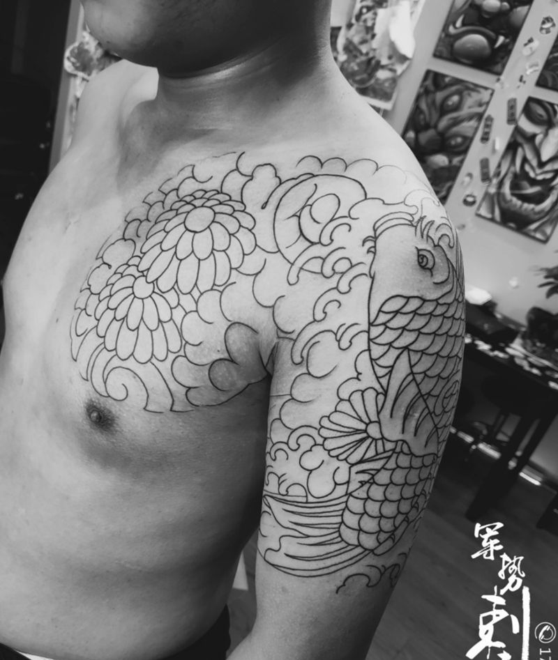 当前位置: 首页 >福建省福州市纹身店-军势刺青处纹身图案>半甲纹身图片_胸部手臂纹身图案
