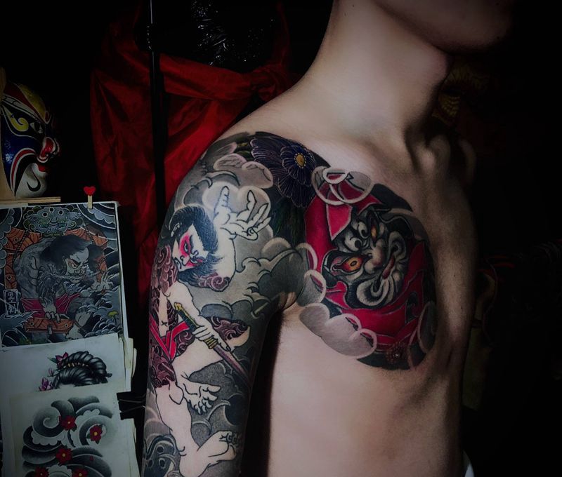 当前位置: 首页 >福建省福州市纹身店-墨刺堂纹身图案>达摩蛋纹身图片_胸部手臂老传统新传统达摩蛋日式人物纹身图案