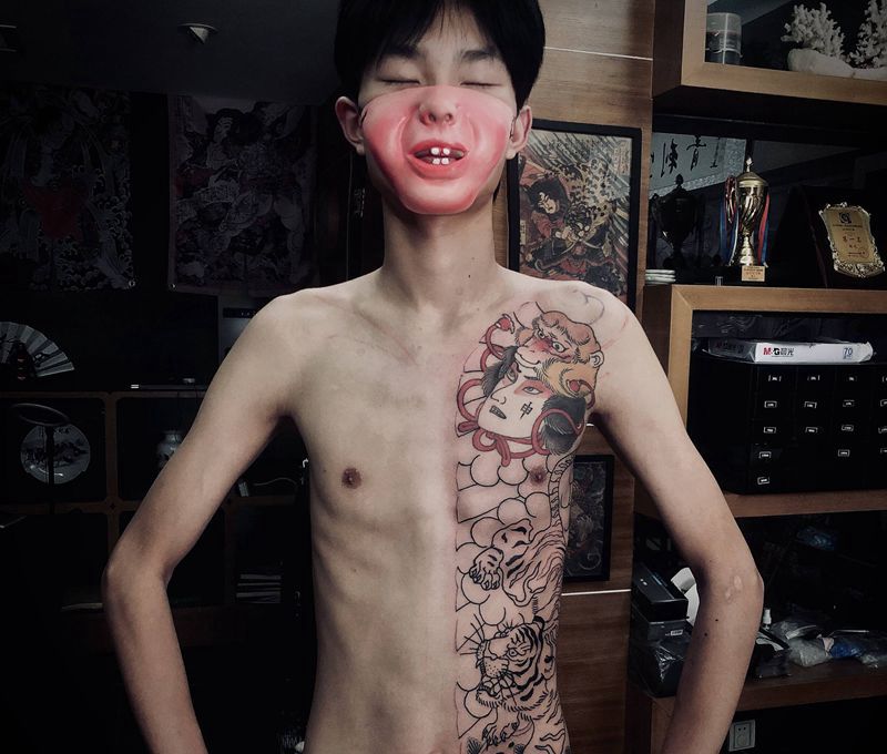 当前位置: 首页 >福建省福州市纹身店-墨刺堂纹身图案>开衫日式纹身图片_胸部腰部老传统老传统 申猴老虎纹身图案