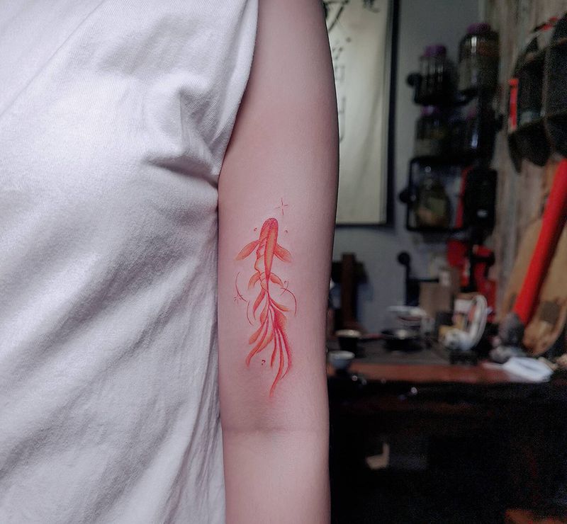 当前位置: 首页 >福建省福州市纹身店-福建纹铭刺青纹身图案>金鱼纹身图片_手臂水墨鱼纹身图案