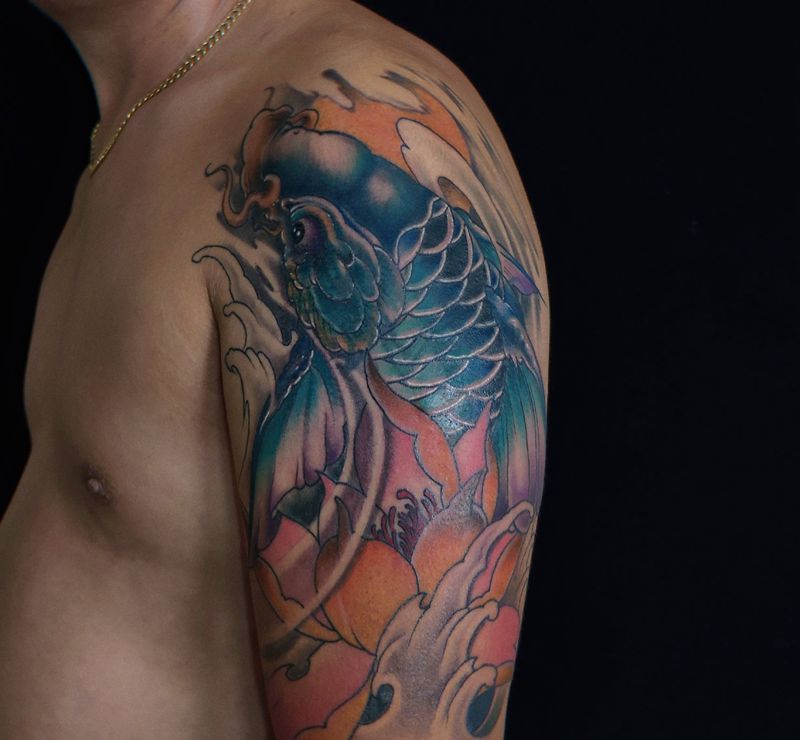 当前位置: 首页 >广东省深圳市纹身店-焱轩堂刺青艺术馆纹身图案>鲤鱼遮盖纹身图片_手臂手部纹身图案